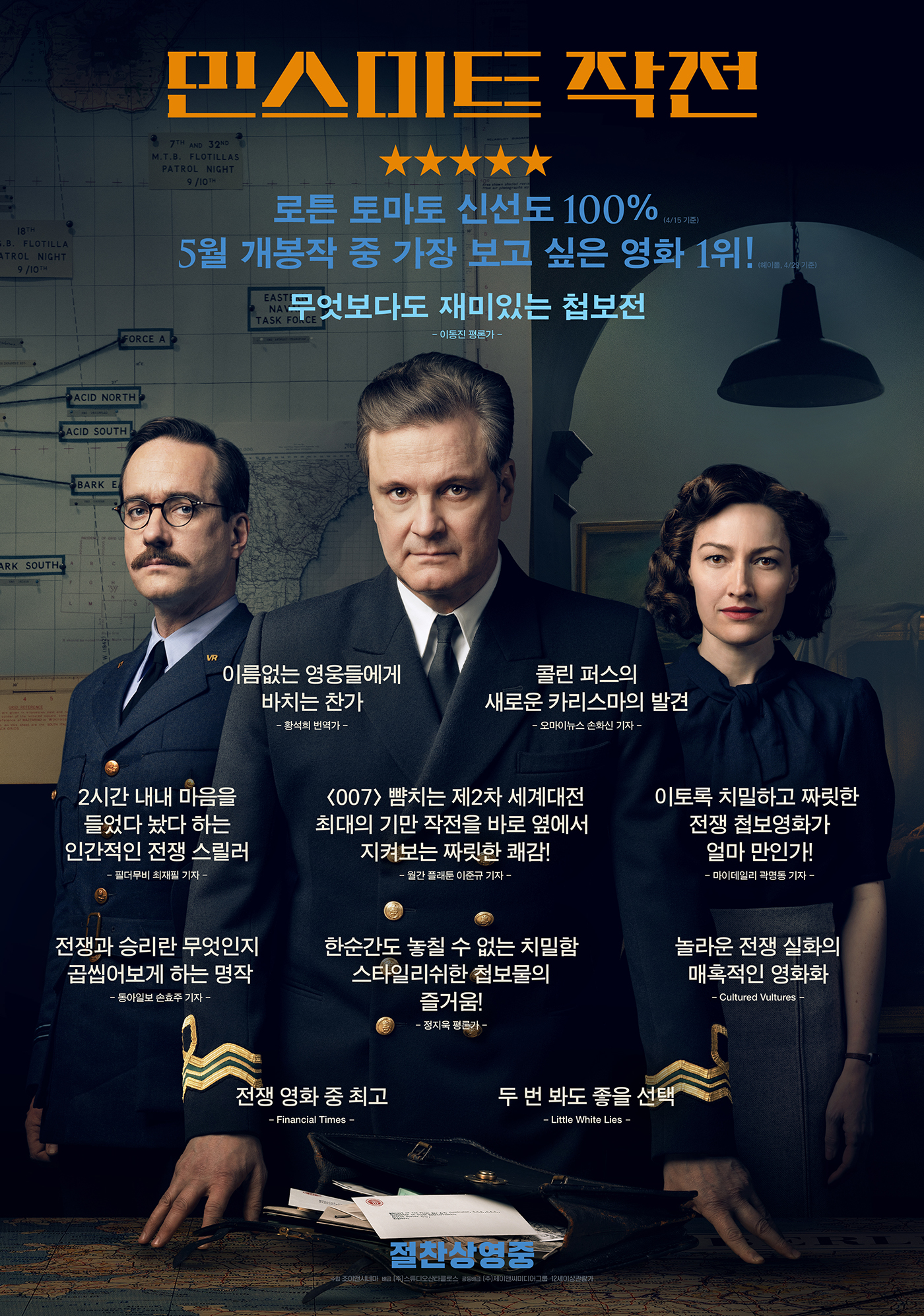 영화 <민스미트 작전>도 위의 영화들과 결을 같이 한다. 총알이 빗발치고 폭탄이 터지고 살점이 솟구치는 전장이 아닌, 목숨에 위협을 느낄 만한 요소가 전혀 없는 안전한 곳에서 벌어지는 '그들만의 전쟁'을 다뤘다. 그들이 행하려는 건 수만 명의 목숨을 좌우하고 전쟁의 성패까지 달려 있는 너무나도 중요한 작전으로, 무조건 성공해야 했다.