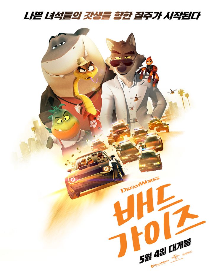 코로나19가 크게 한 풀 꺾인 시점에 드디어 드림웍스다운 신작 애니메이션이 찾아왔다. 호주 아동작가 애런 블레이비의 동명 아동만화를 원작으로 하는 <배드 가이즈>, 매력적인 캐릭터와 역동적인 액션을 앞세워 주제를 너무 무겁지 않게 전하는 데 성공했다. 누가 봐도 드림웍스 애니메이션이라는 걸 알게 해 줬다는 것과 흥행도 어느 정도 성공했다는 건, 드림웍스 애니메이션의 부활을 알리는 신호탄으로 봐도 무방하지 않을까 싶다.