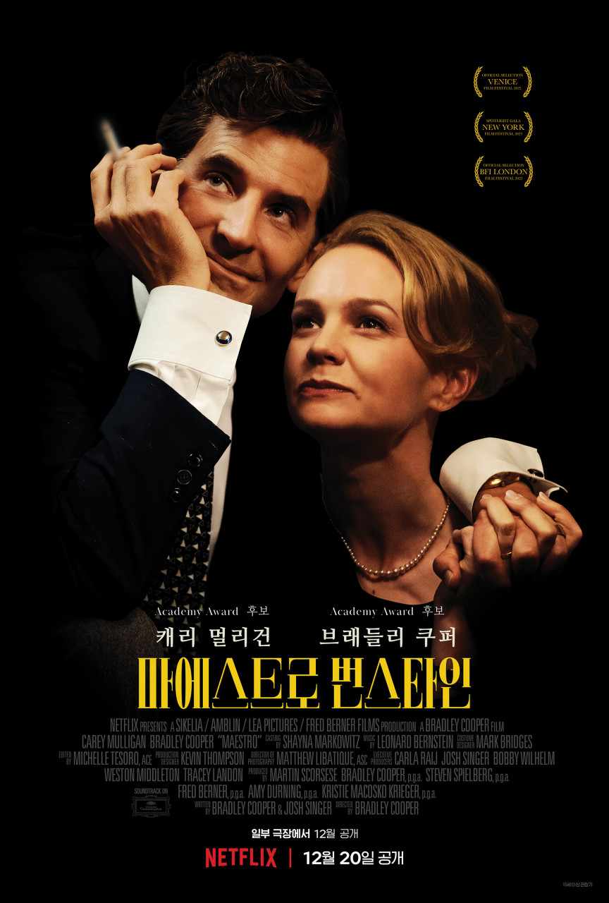 넷플릭스 오리지널 영화 <마에스트로 번스타인>은 제목에서도 드러나듯 레너드 번스타인의 삶을 전반적으로 훑었다. 브래들리 쿠퍼가 완벽하게 소화하며 1990년 세상을 떠난 번스타인을 수십 년 만에 되살려놨다. 2018년 <스타 이즈 본> 때처럼 감독, 각본, 제작, 주연을 도맡았고 호평을 받았다.