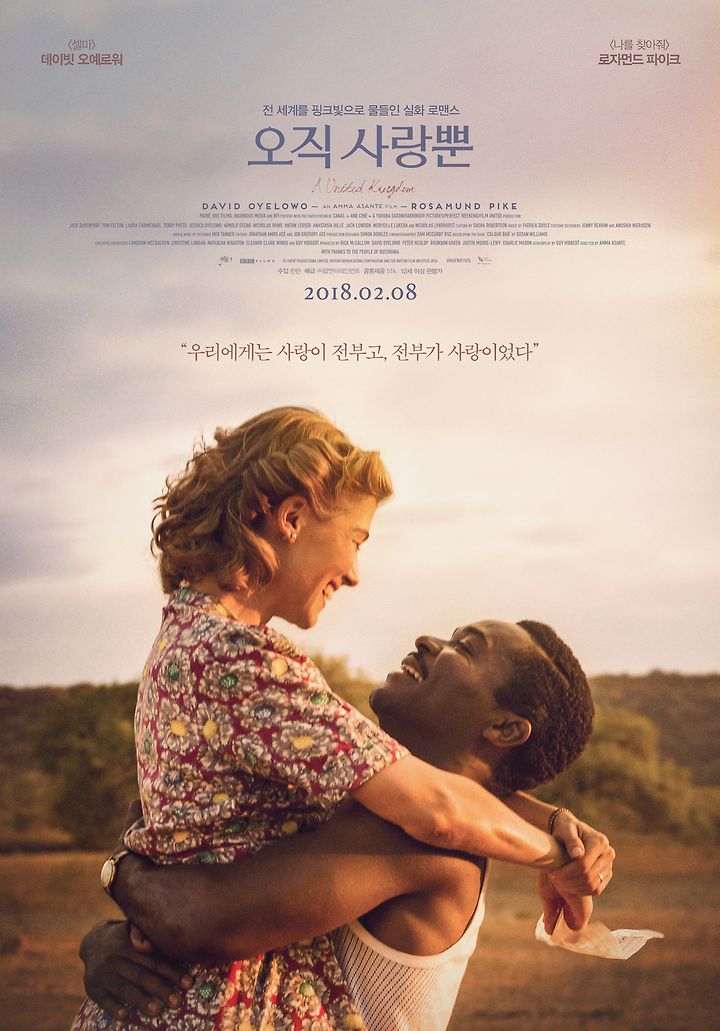 한국 개봉 제목인 <오직 사랑뿐>이 멜로에 중점을 두었다면, 원제인 <A United Kingdom>은 드라마와 다큐멘터리에 중점을 두었다고 할 수 있다. 물론 영화의 중심에는 두 사람의 절절한 사랑이 위치하지만, 그 이면에 복잡하기 그지 없는 국내외 정치 정세가 자리하고 있다. 그리고 종국에 말하고자 하는 건 '베추아날란드'라는 나라가 아닌가. 영화는 이 두 마리 혹은 수십 마리 토끼를 한 번에 잡기 위해 고군분투하는 느낌이다.