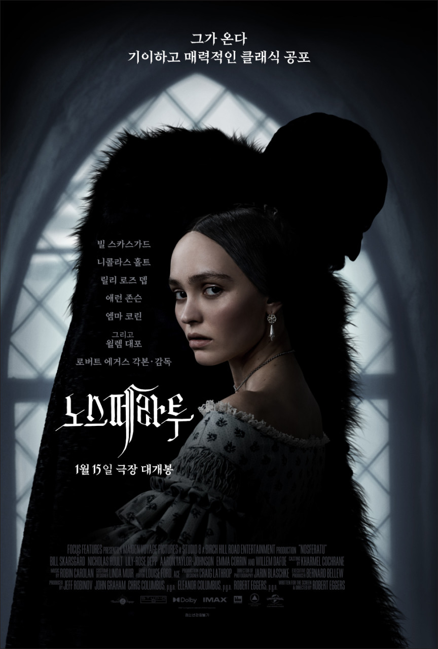 영화 역사상 최초의 뱀파이어 영화이자 최고 걸작 중 하나로 길이남은 프리드리히 빌헬름 무르나우 감독의 독일 영화 <노스페라투>는 1979년 독일에서 리메이크되었고 2024년 미국에서 두 번째로 리메이크되었다. 2025년 1월 우리나라에 상륙했다. 미국이 낳은 공포 영화 거장으로 떠오른 로버트 에거스가 연출과 각본을 도맡았고 그를 발굴해 키운 크리스 콜럼버스가 이번에도 제작에 참여했다.
