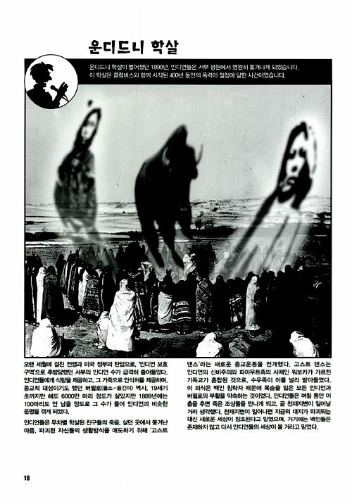 미국의 전쟁은 이뿐만이 아니었다. 외부 침략의 전쟁과 맞물려 내부에서 조용하지만 격렬하고 끔찍한 전쟁이 계속되었다. 책의 시작에 나오는 '운디드니 학살'은 내부에서의 전쟁이라고 할 수 있지만, 당시만해도 엄연한 '침략'이었다. 수천 년동안 살고 있던 터전에 갑자기 타인이 쳐들어온 것이 아닌가?