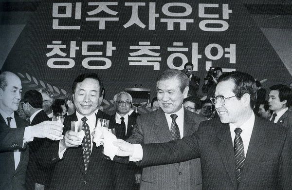 김영삼 하면 잊지 못할 대사건이 하나 더 있다. 1990년 '3당 합당'이다. 당시 집권여당이었던 민정당과 제2야당 민주당, 제3야당 공화당이 합당해 '민주자유당'을 출범시켰다. 지금의 새누리당 전신이다. 이는 노태우 정권의 철저한 노림수였다. 당시 국민들의 민주화 요구와 군사정권 청산 요구에 압박을 받고 있던 정권은, 급기야 1988년 제13대 국회의원 선거에서 과반수 확보에 실패하자 보수 연합을 추진한다. 이에 내각제 개헌을 약속하며 3당 합당을 이끌어냈다. 노태우, 김종필 그리고 김영삼. 생각지도 못한 일이었다. 김영삼 입장에서는 거악(巨惡)이나 마찬가지인 이들과의 조우라니. 어떤 변명을 대도 신통치 못할 사건이었다.